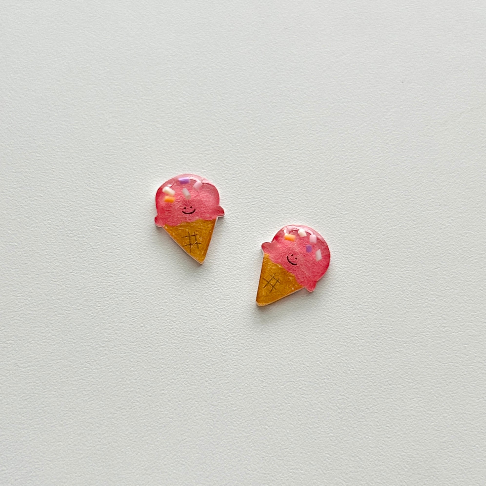 プラバンに描き、レジンでツヤツヤぷっくり仕上げました。