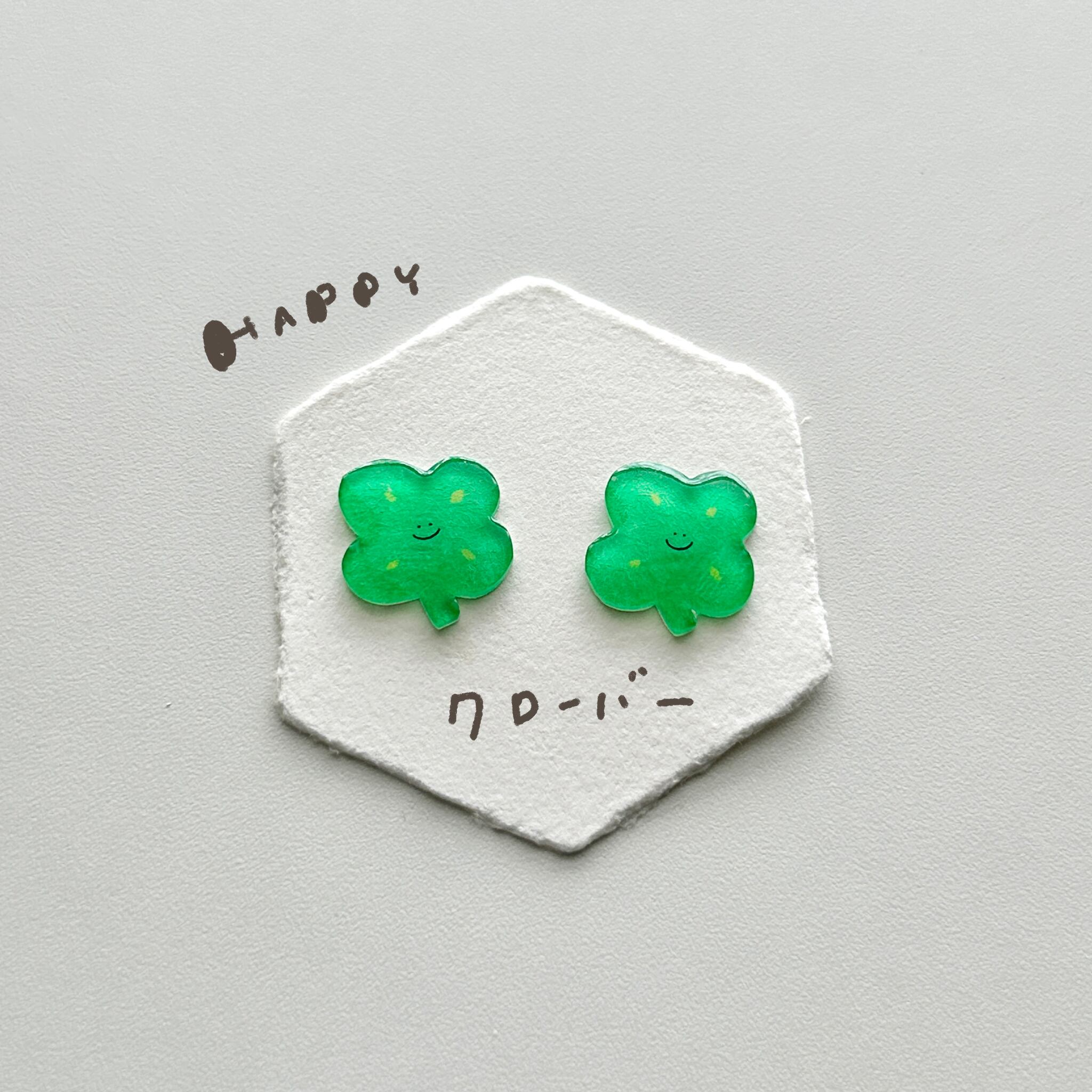 プラバンに描き、レジンでツヤツヤぷっくり仕上げました。