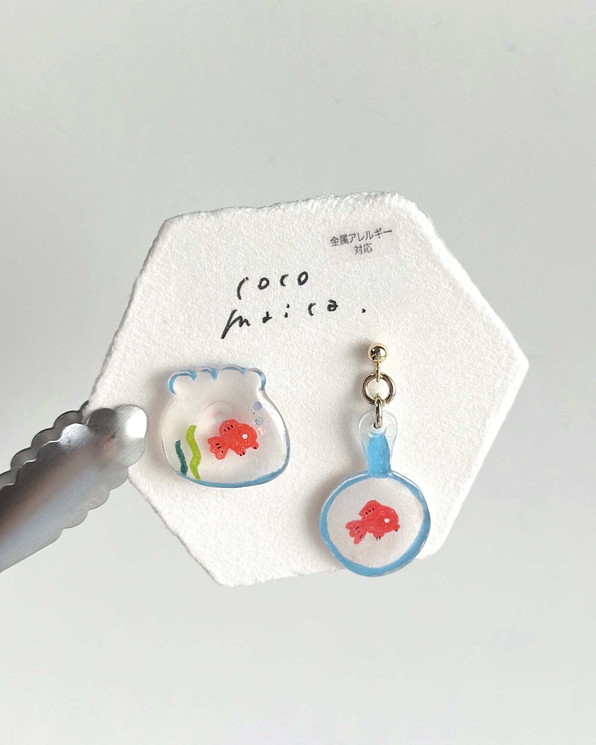 *金魚鉢は貼り付けタイプの樹脂ピアス/樹脂イヤリングのみ。金魚ポイは揺れるタイプの金具がお選びいただけます。