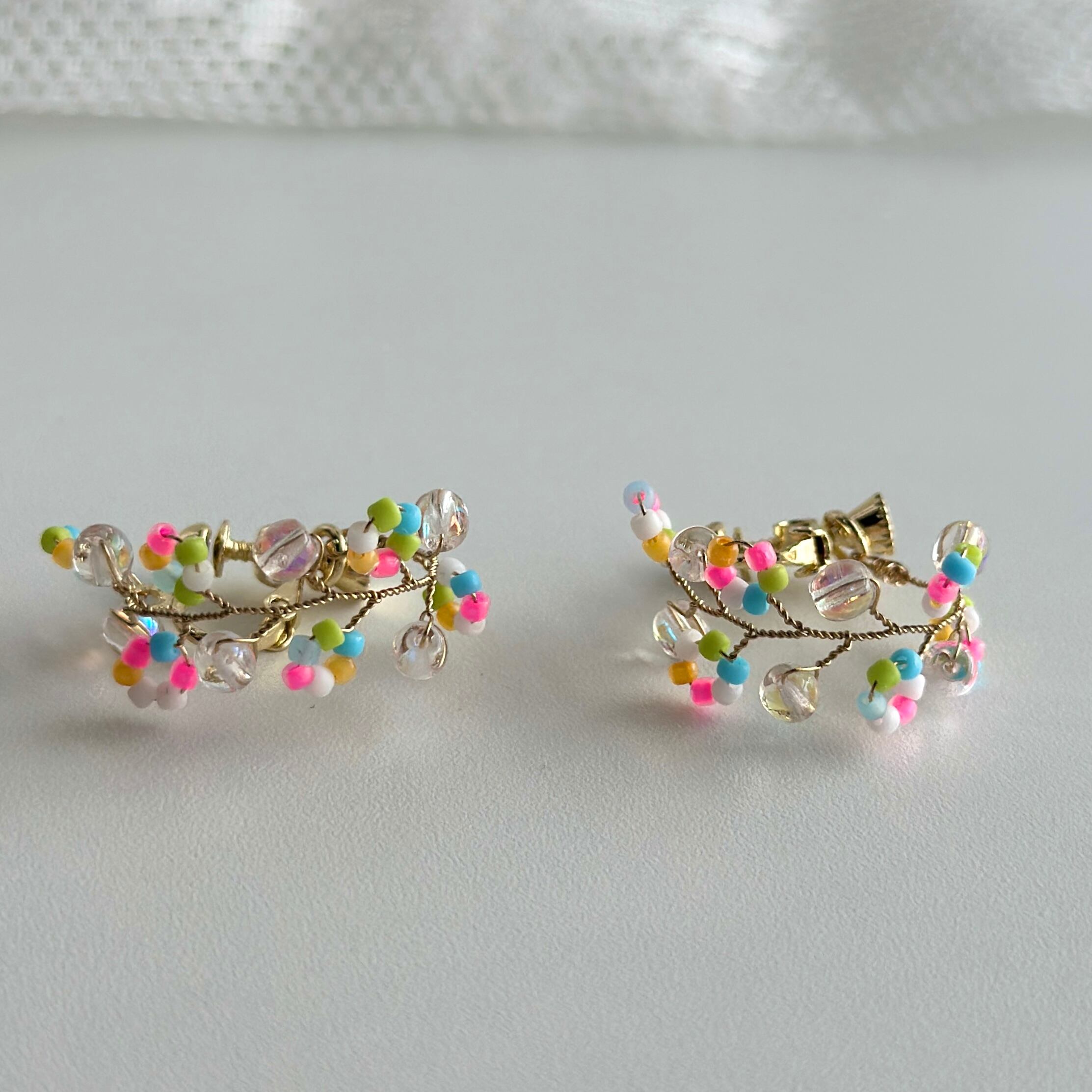 イヤリングはネジバネのねじ部分に繋げています。