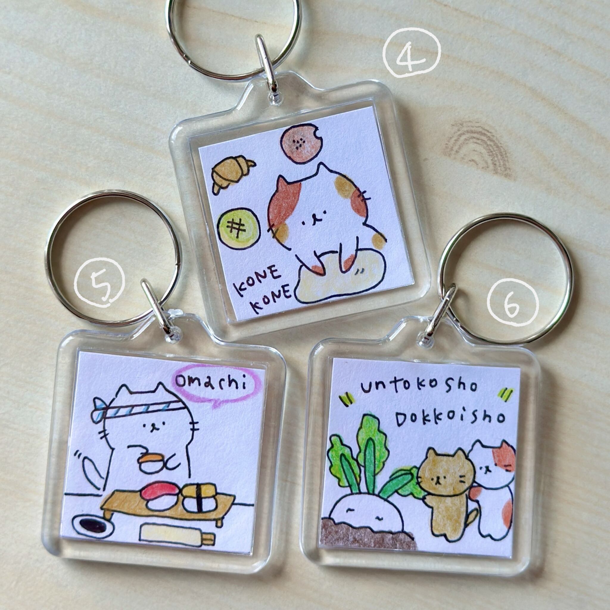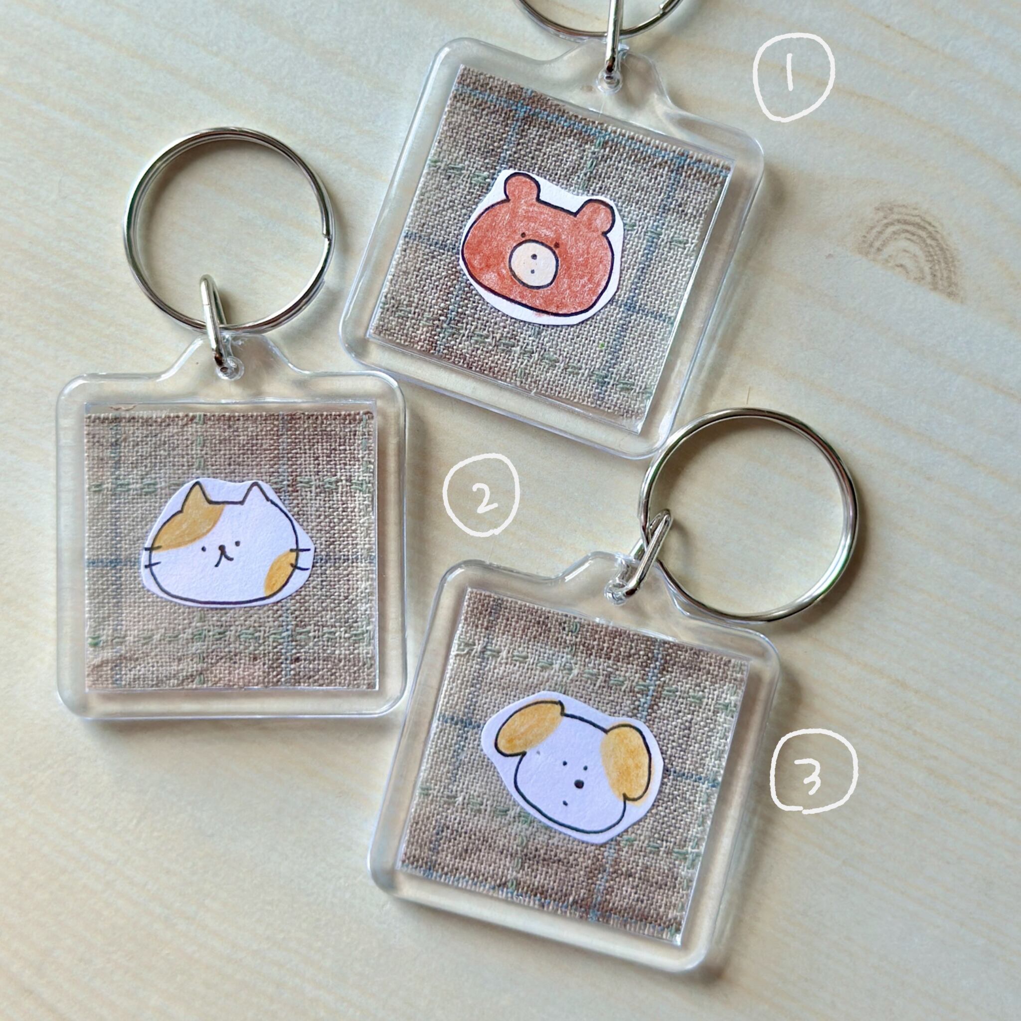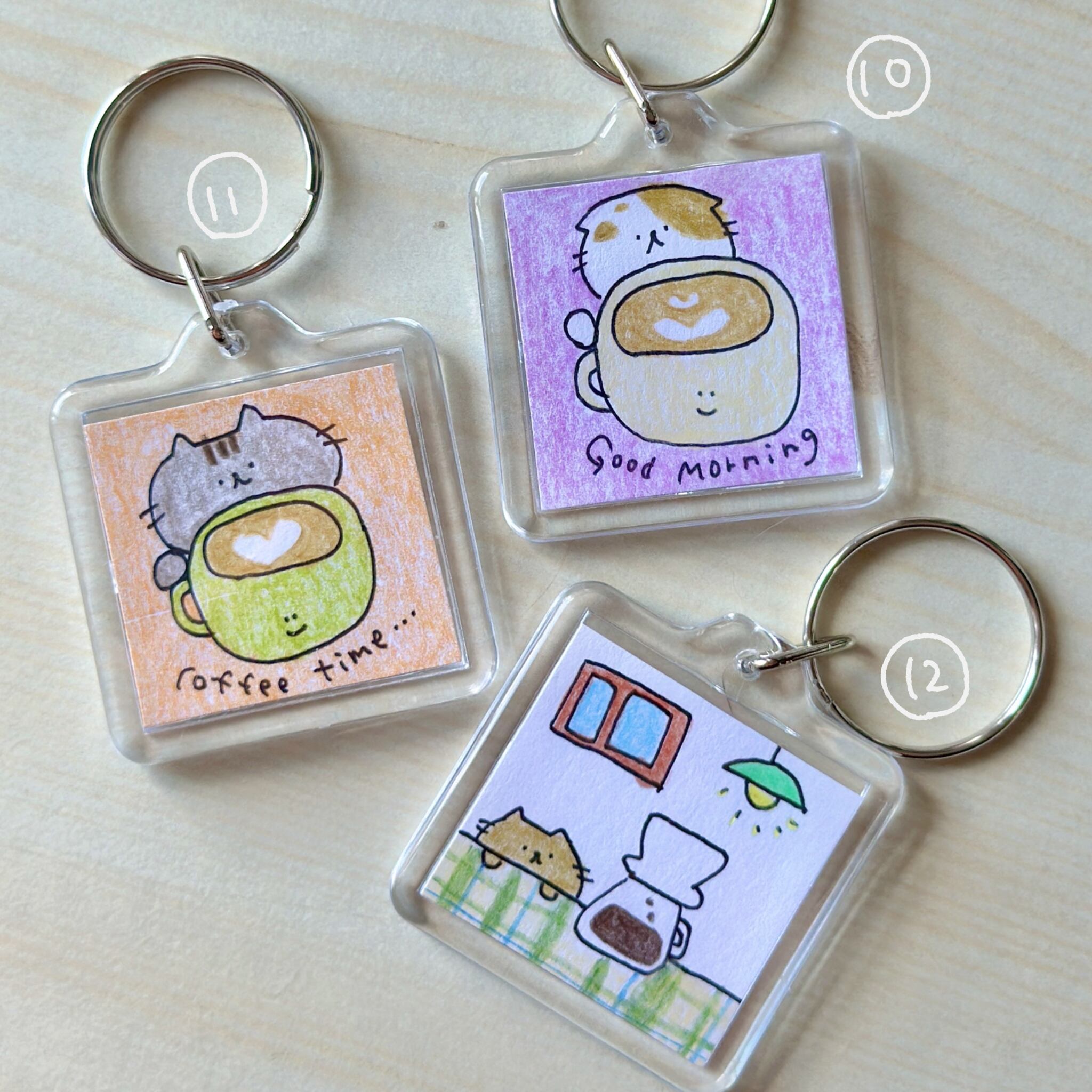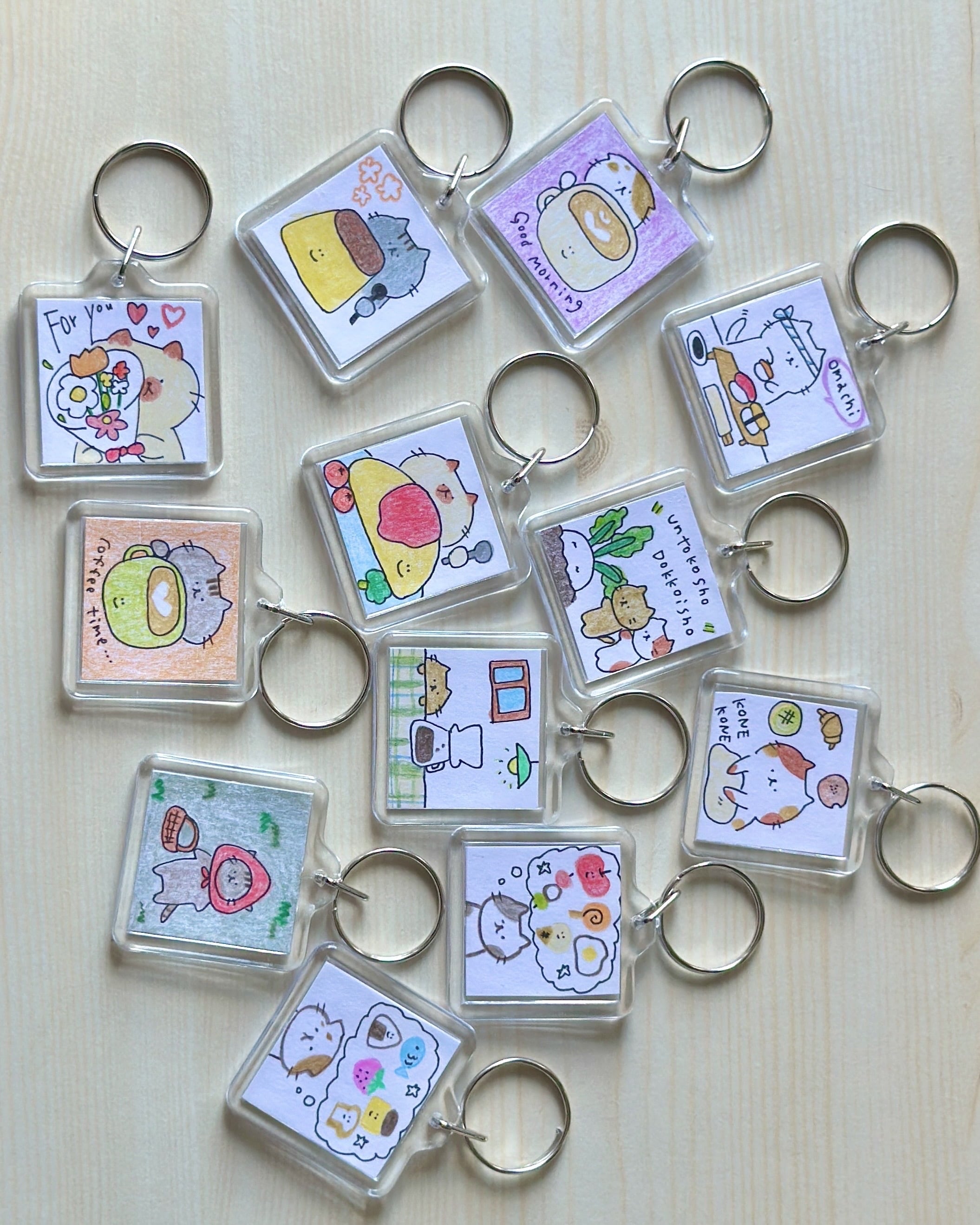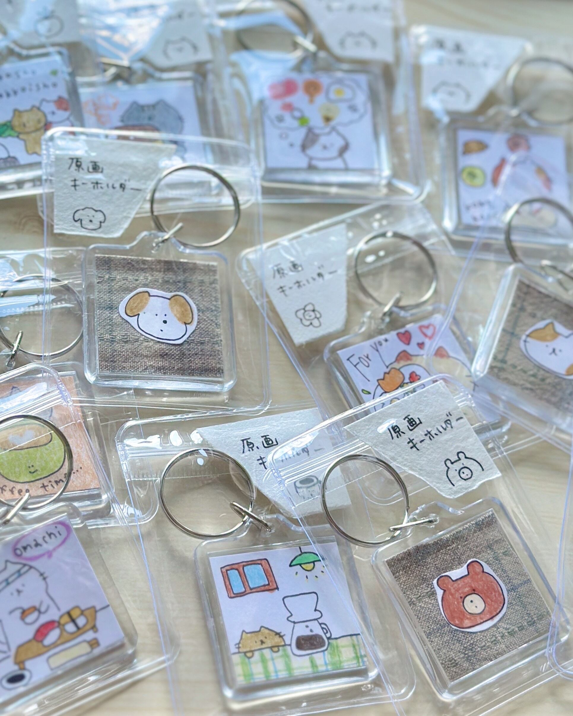 色鉛筆で描いた小さな原画をキーホルダーに閉じ込めました☺︎