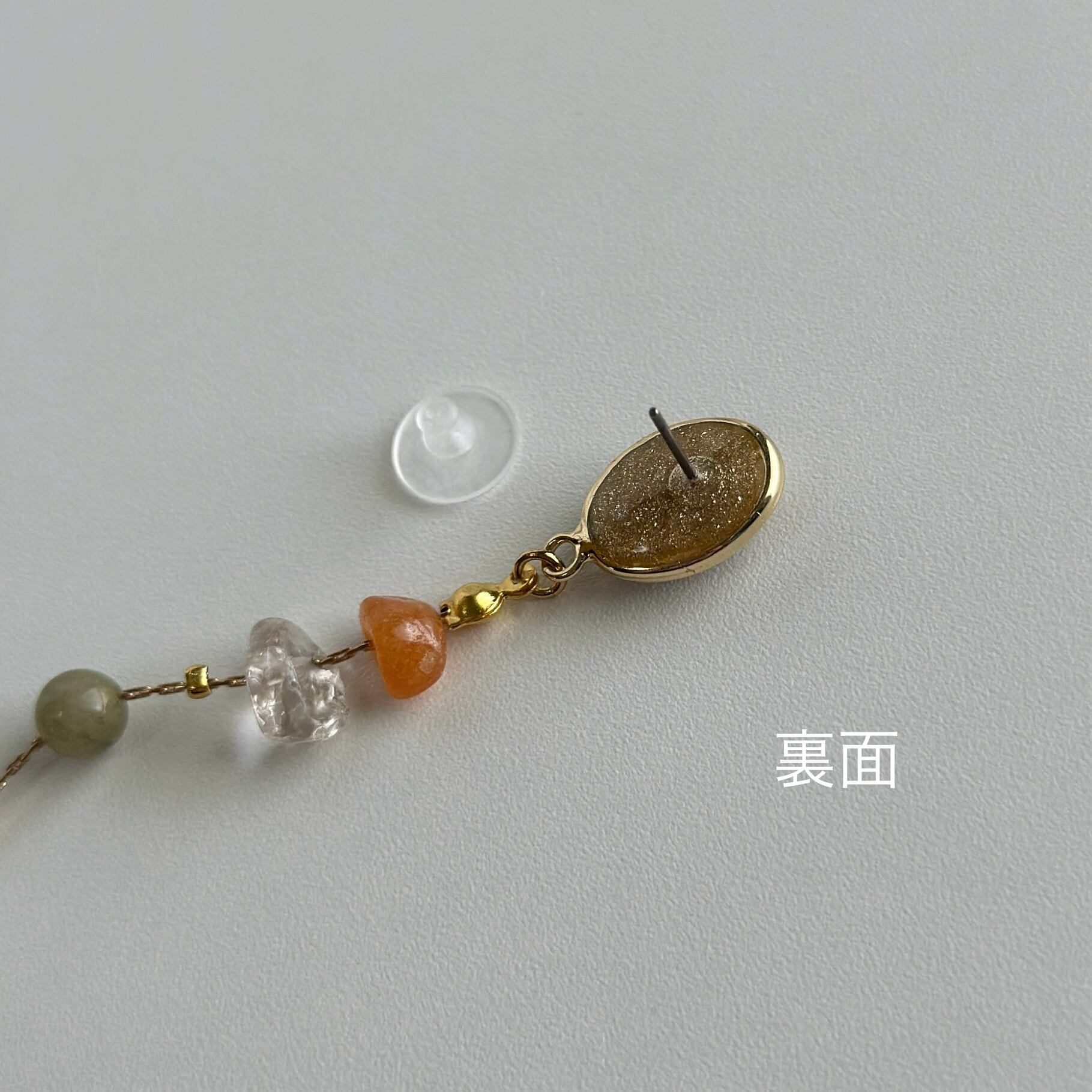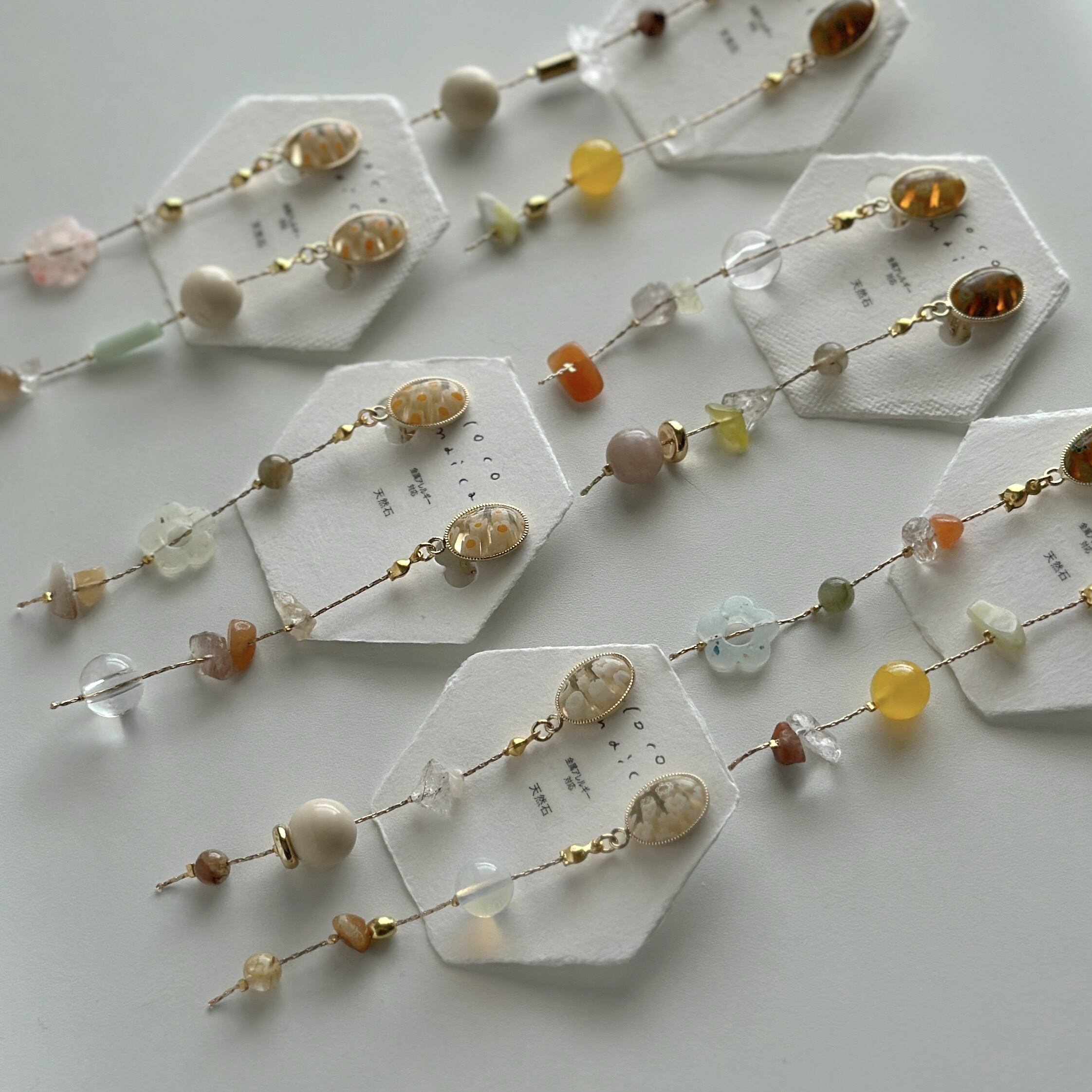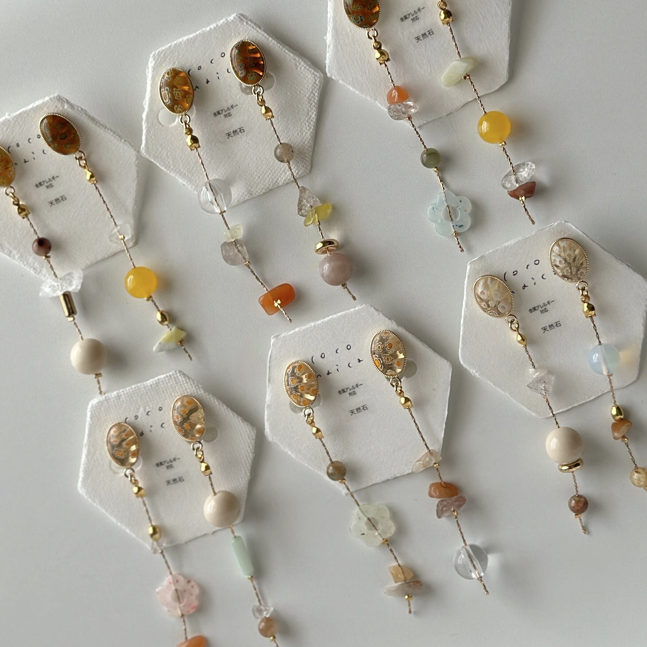 天然石やお気に入りのビーズを散りばめてアシンメトリーに仕立てました☺︎