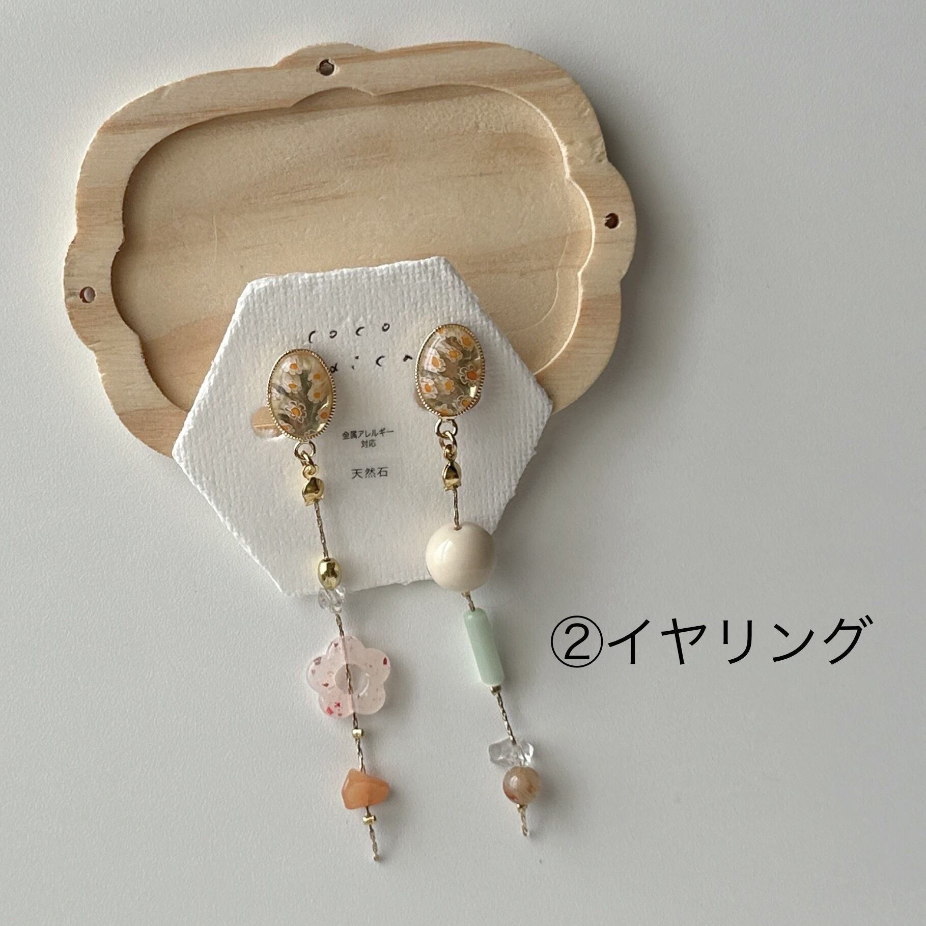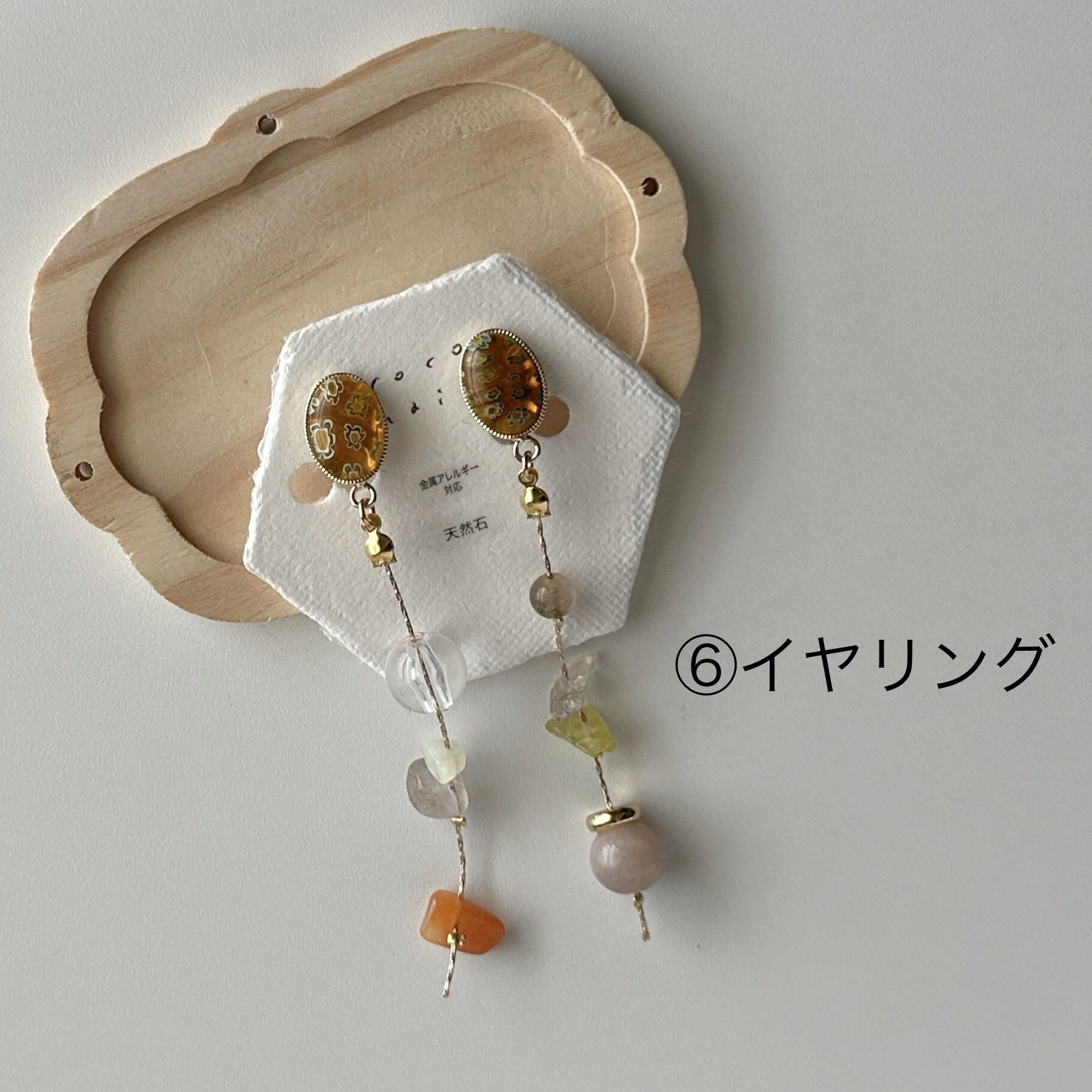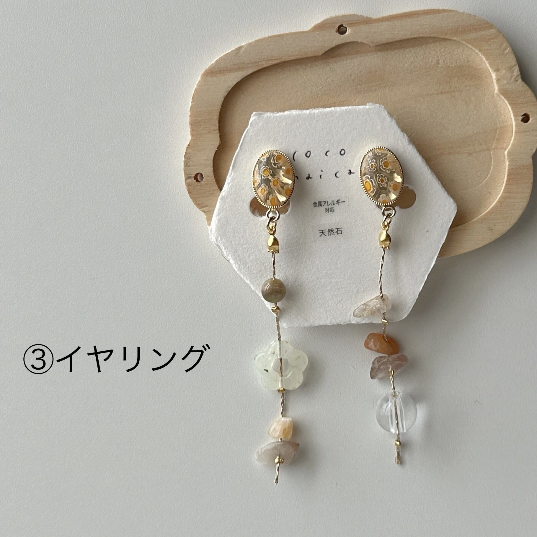 天然石やお気に入りのビーズを散りばめてアシンメトリーに仕立てました☺︎