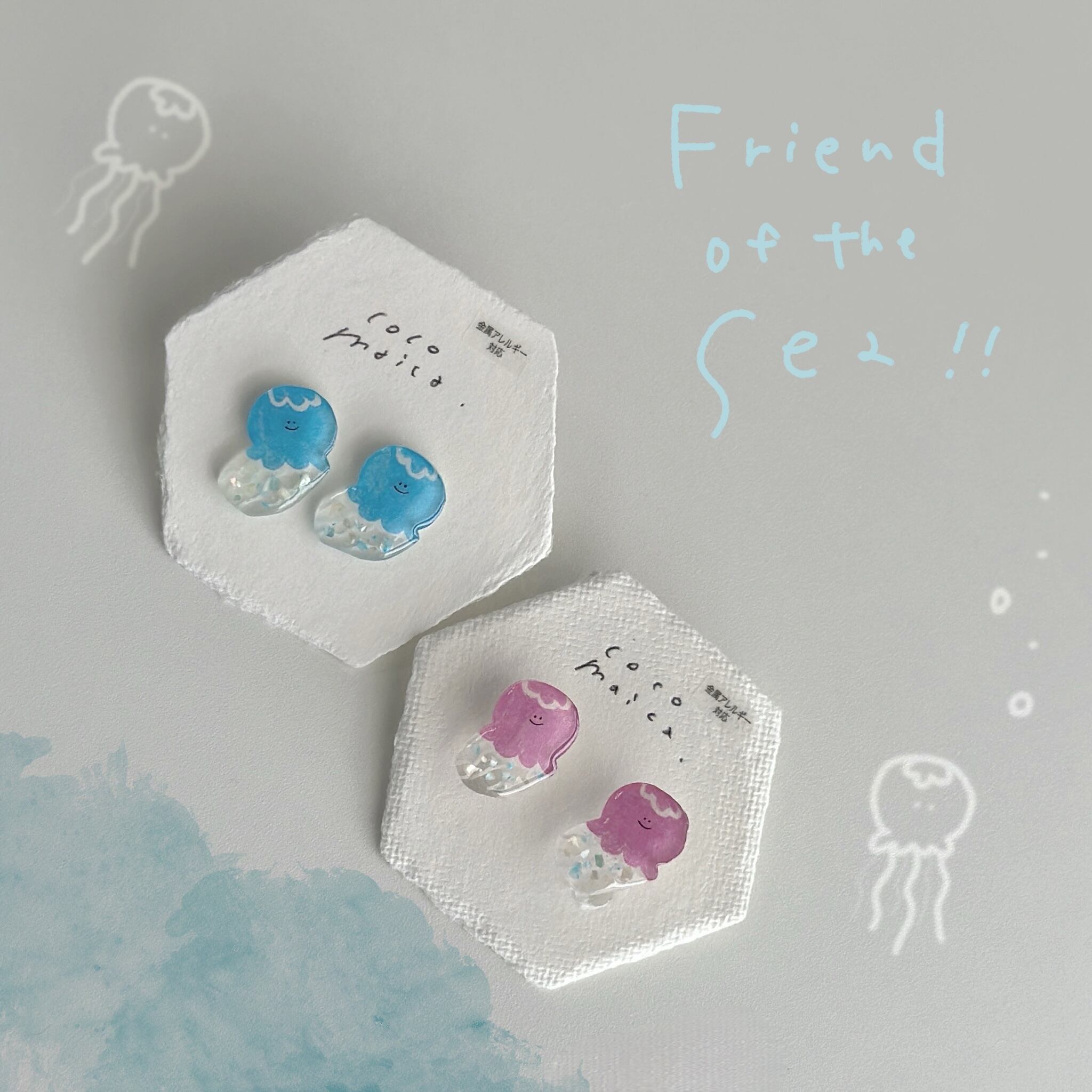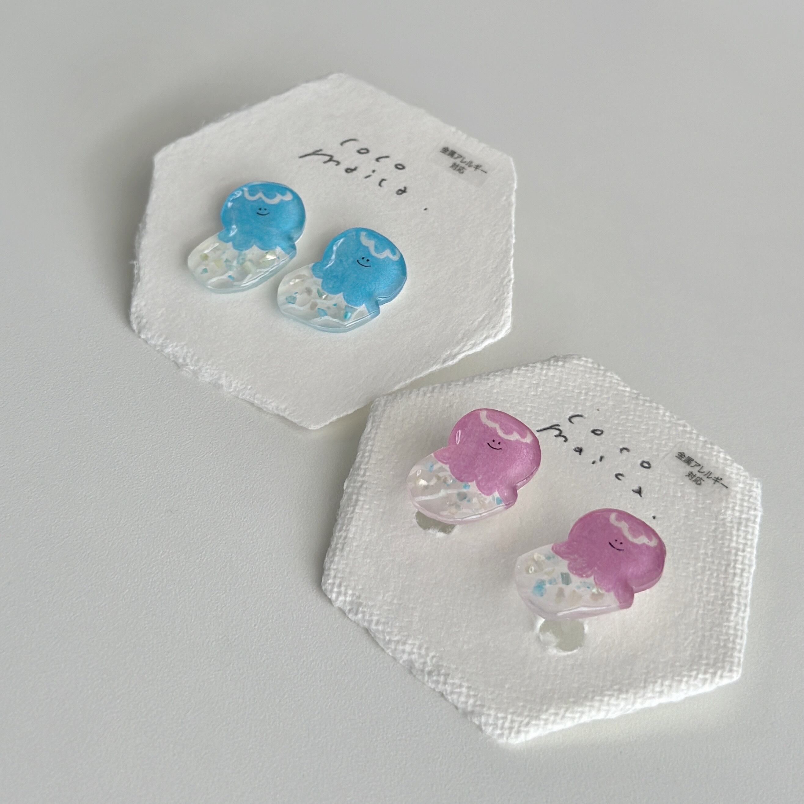 プラバンに描き、レジンでツヤツヤぷっくり仕上げました。