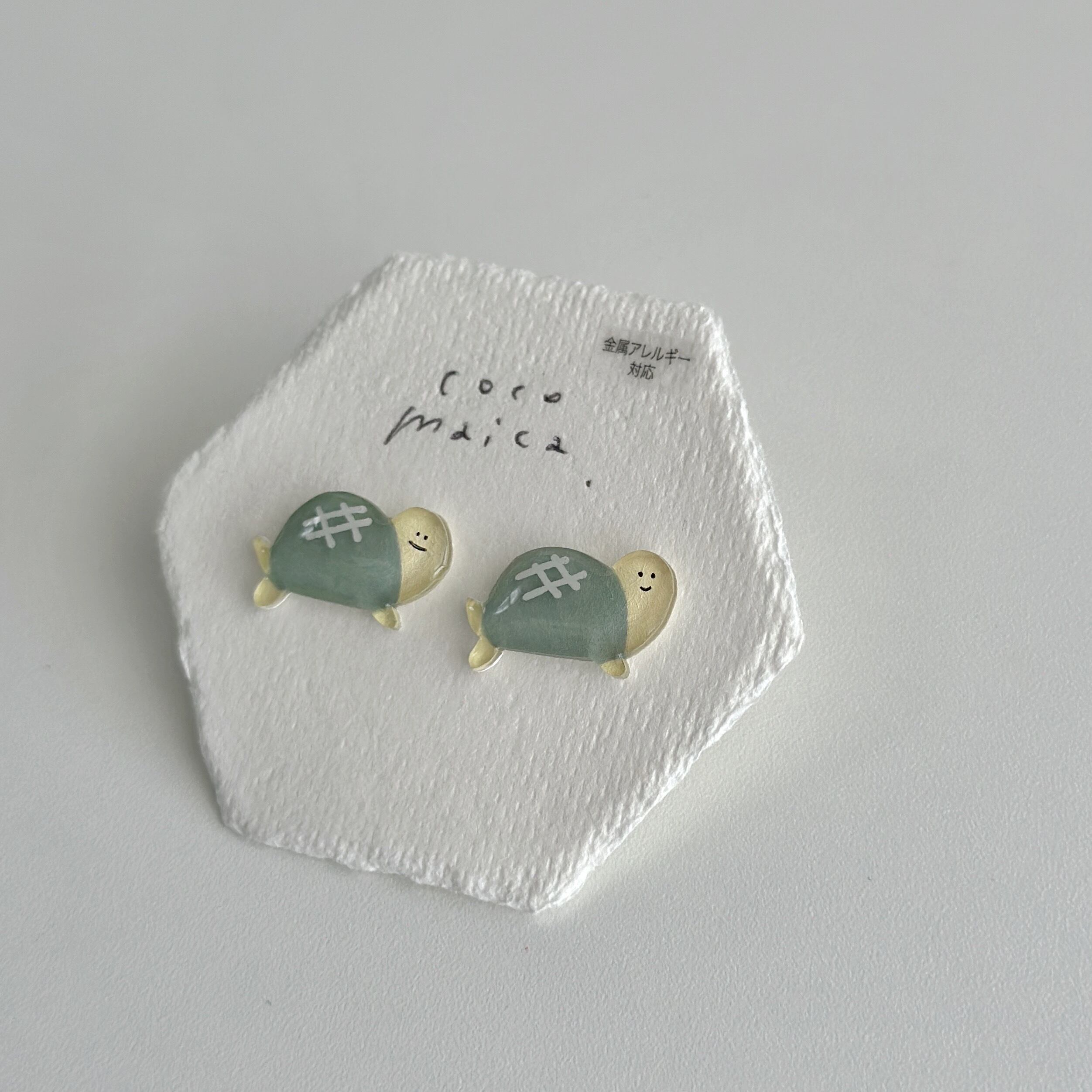プラバンに描き、レジンでツヤツヤぷっくり仕上げました。