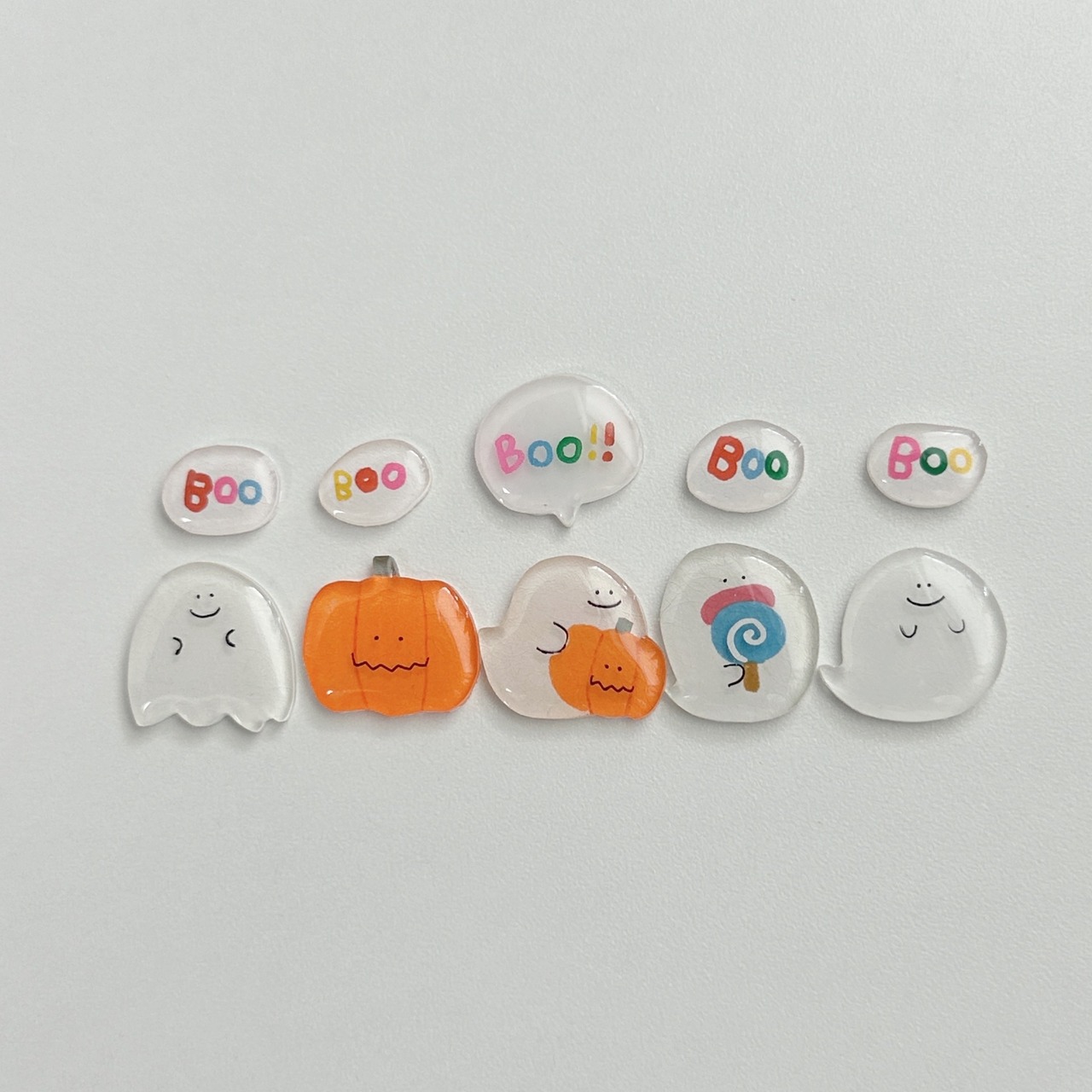 プラバンに描き、レジンでツヤツヤぷっくり仕上げました。