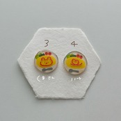 プラバンに描き、レジンでツヤツヤぷっくり仕上げました。